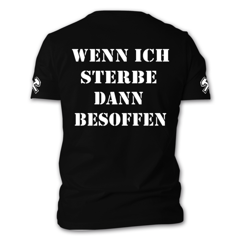 Schwarzes Kult-Motiv mit weißem Aufdruck (vorne/inten) – hier kommt als besonderer Clou noch hinzu, dass auch auf den Ärmeln das Hammerzeichen aufgedruckt ist!