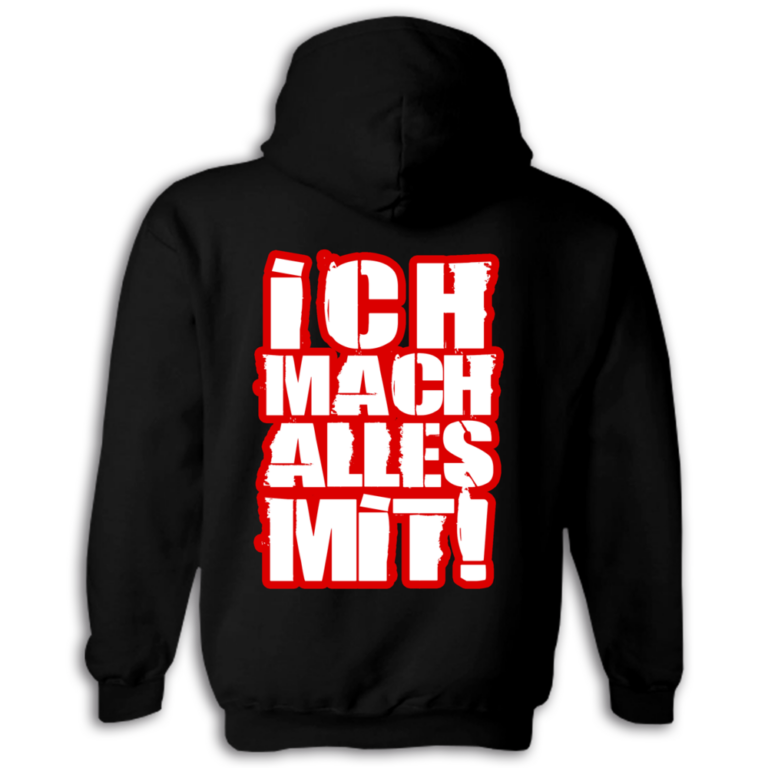 Auf der Vorderseite das Band-Logo mit Schriftzug und „Musik für die Unterschicht“. Auf der Rückseite dann der Kult-, Sex-, Sauf-, Sport- und Randale- Spruch „Ich mach alles mit“