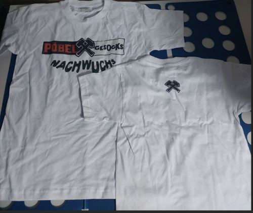 Beidseitig bedruckt (weisses Shirt, farbiger Aufdruck).