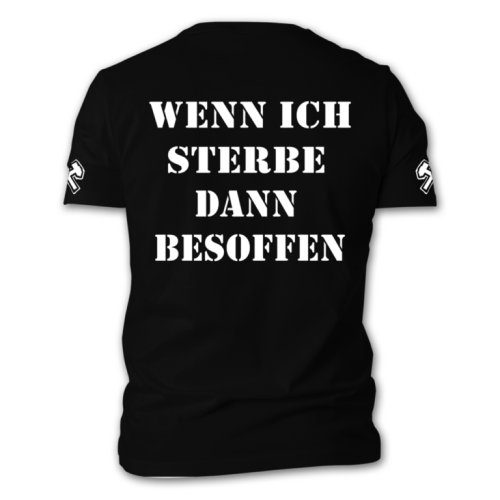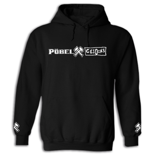 Schwarzes Kult-Motiv mit weißem Aufdruck (vorne/inten) – hier kommt als besonderer Clou noch hinzu, dass auch auf den Ärmeln das Hammerzeichen aufgedruckt ist!